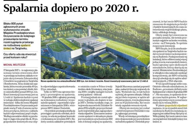 Czyste Radiowo od początku mówiło, że to zagranie mające na celu uspokojenie ludzi. Spalarnia nie powstanie na przełomie 2018/19 Teraz mówią po 2020! Dla tych którzy nie mają dostępu do archiwum GW: